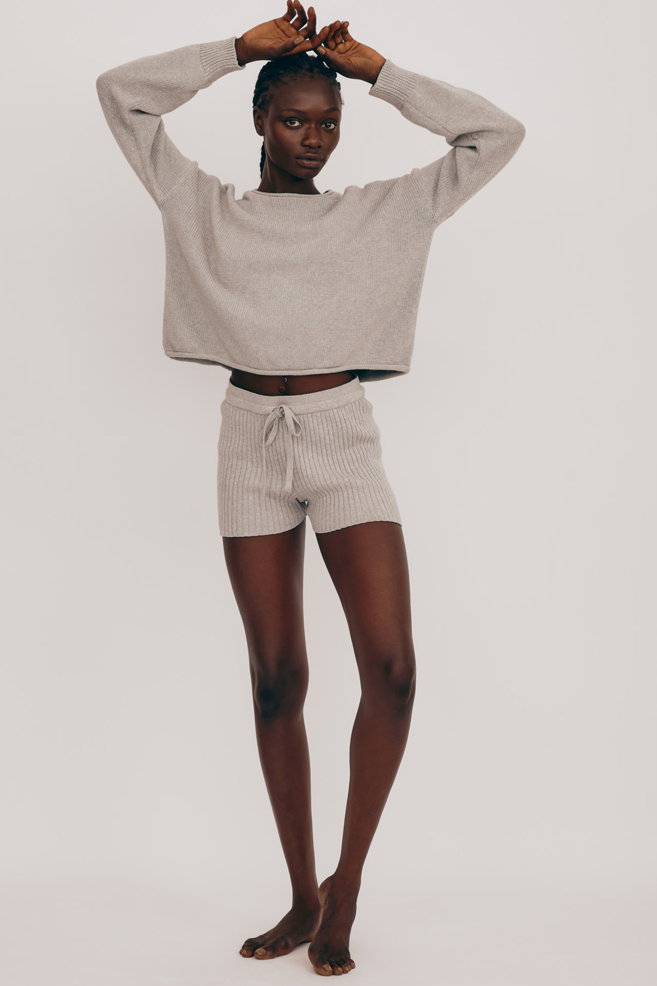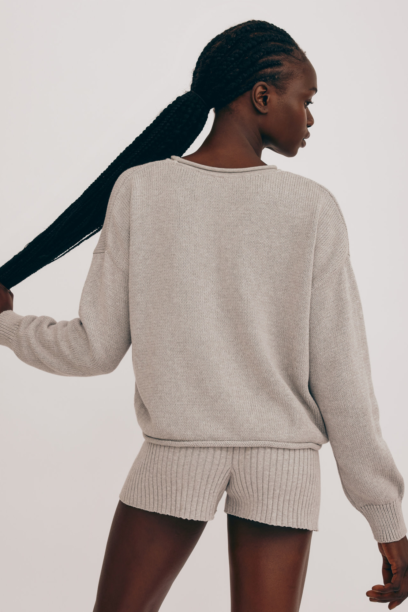 Layer up in this GOTS-certified organic cotton sweater made in a knitted material that hugs you just right. Features rib knitted cuffs and an open knit neckline.