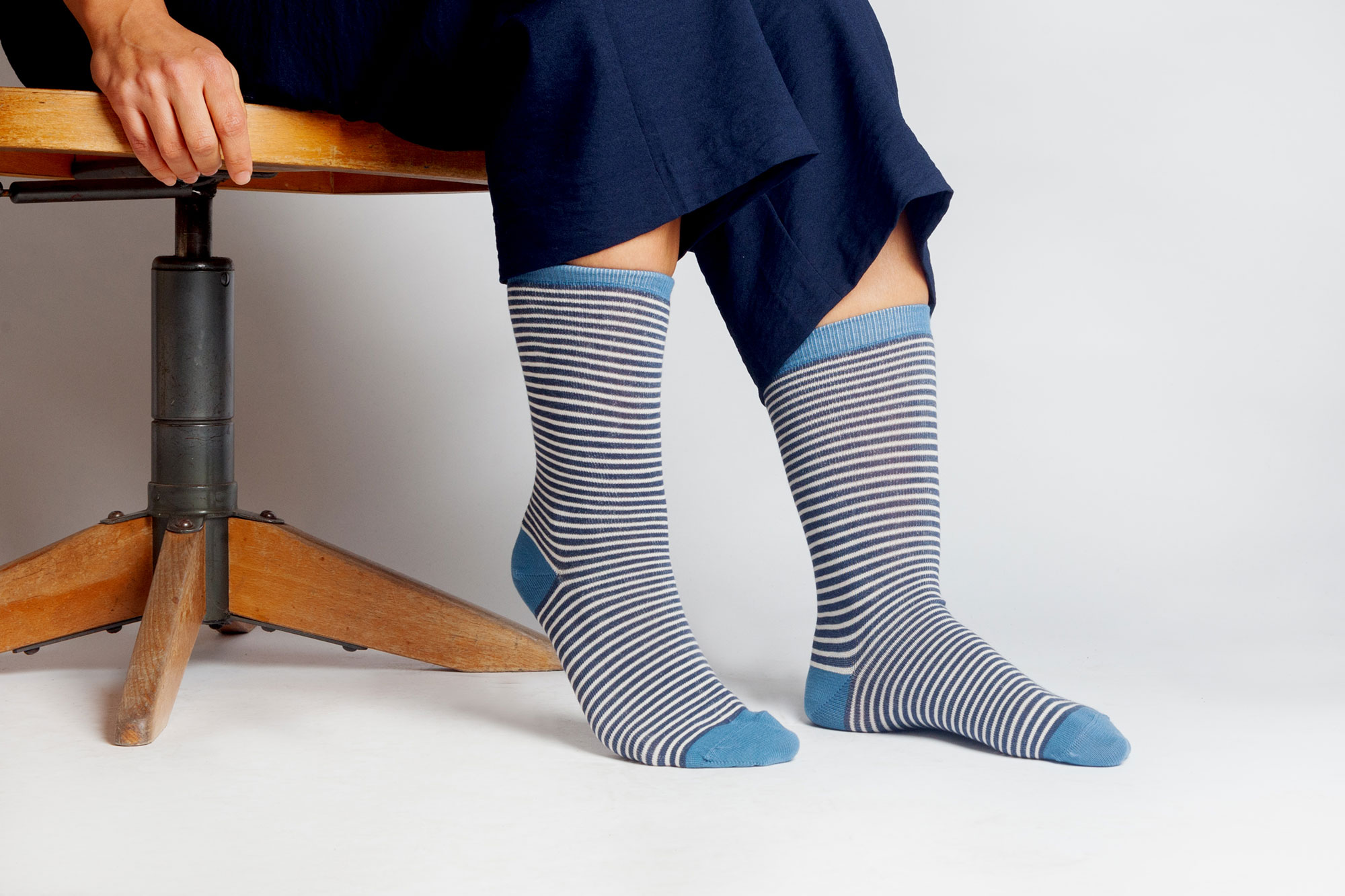 Die gestreifte Socken für Frauen aus Bio Baumwolle mit feinen Elasthan-Fäden sind sehr bequem und der Kofortbund ist sehr angenehm auf der Haut.