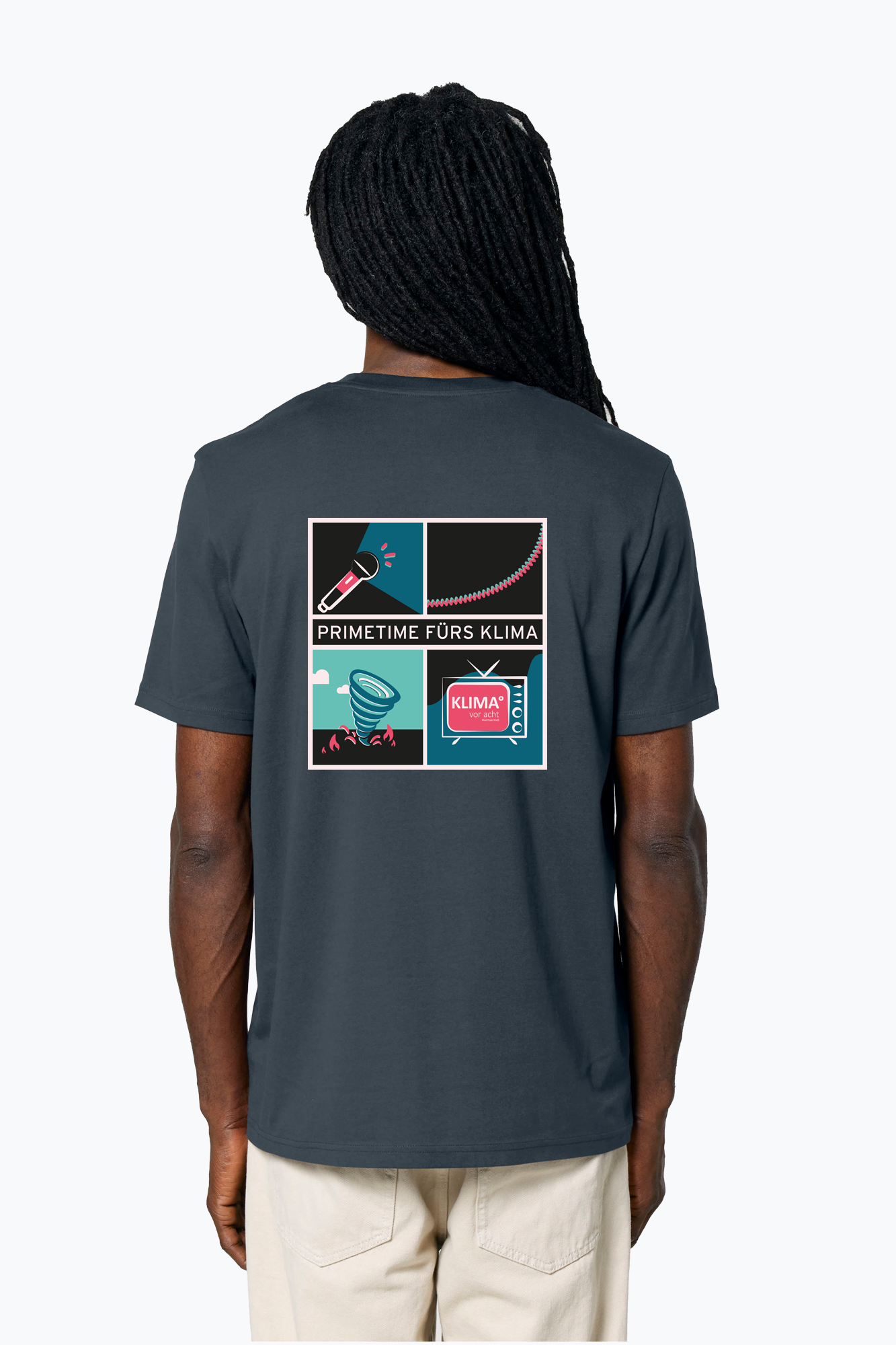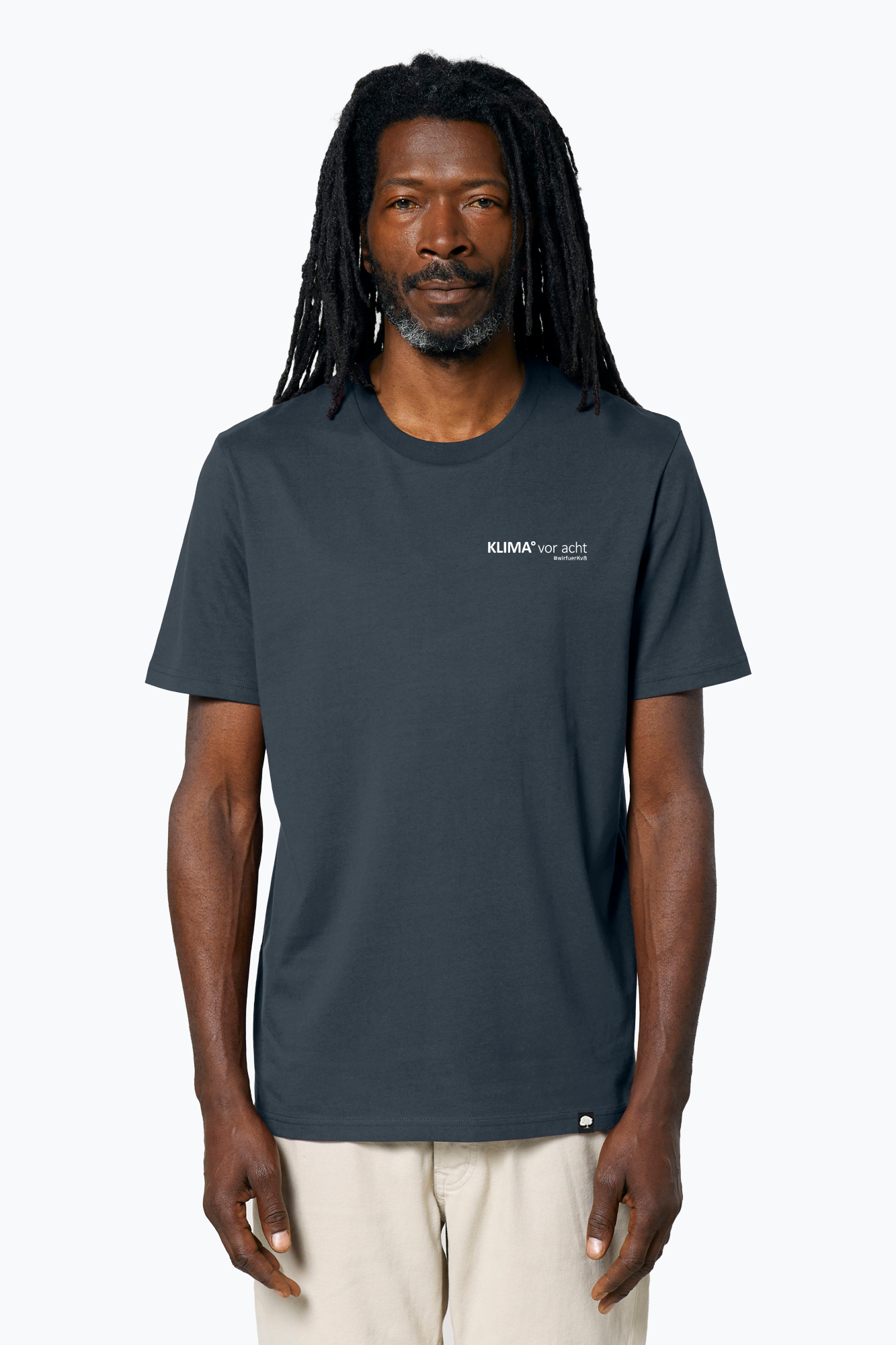 Das "KLIMA° vor acht" T-Shirt. Eine Initiative für mehr Klimanachrichten in den Medien. Hier geht's zu Ihrer Webseite: www.klimavoracht.de. Das Design ist auf dem Bio T-Shirt "Larex" aufgebracht mit universeller Passform, und ist durch seine Symbiose aus Understatement und Klassik, das ideale Shirt fur jeden Anlass. Clean, puristisch und herrlich unkompliziert setzt es nicht nur in punkto Look ein Zeichen.